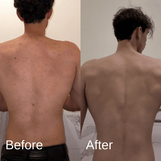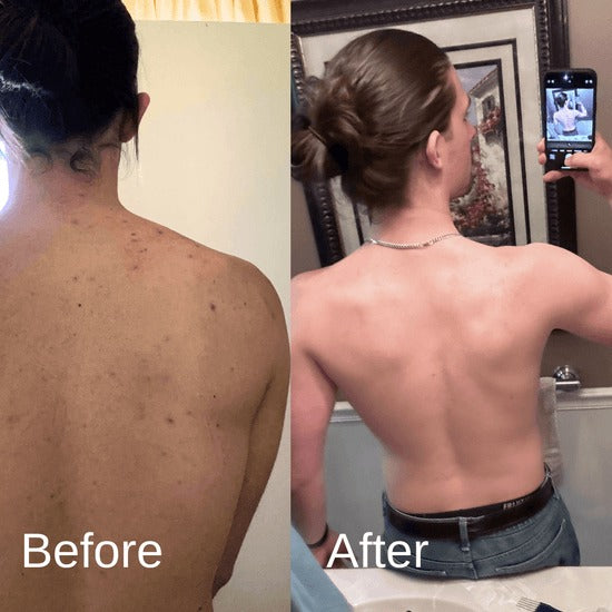 Secret Scents Body Acne Cream is made for the thicker, tougher skin on your back, shoulders, chest, and more. It uses a breakthrough form of benzoyl peroxide called Curoxyl-42.